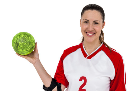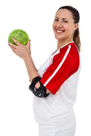白い背景の上にボールを持つポーズ スポーツウーマン の写真素材 画像素材 Image